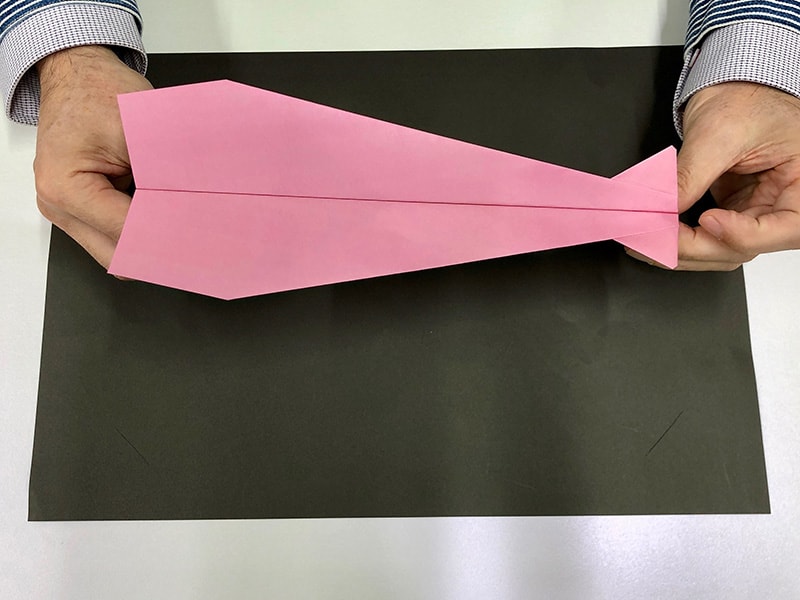 あとは、そのヒコーキを飛ばしたいスピードと角度をイメージしながら送り出そう。あきらめずに練習すれば、いつのまにか紙ヒコーキを自由にあやつれる紙の魔術師になっているはずだよ。