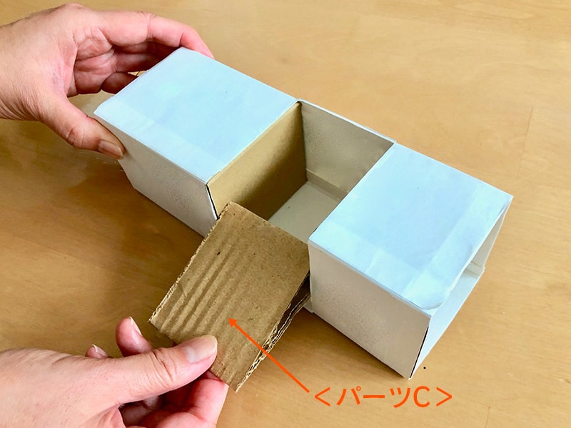 <パーツC>を取りつけて、両面テープなどで固定しよう。
