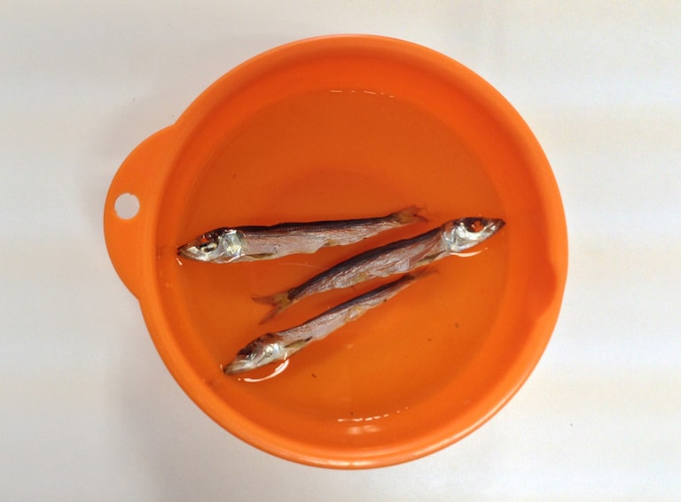 にぼしを水から出して、新聞紙など水気を吸いやすいものの上で半乾きにする。