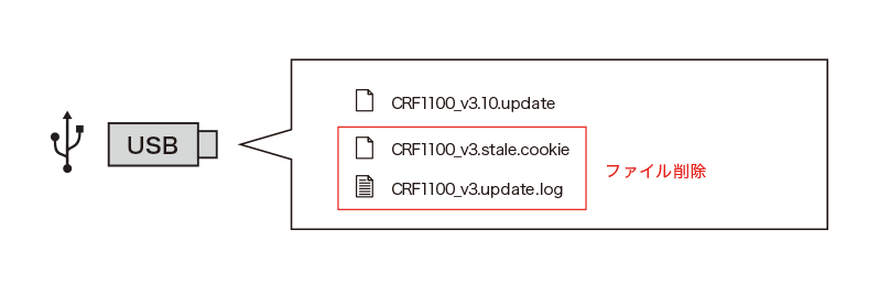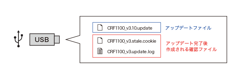4. 更新プログラム(ファイル名:CRF1100_v3.10.update)をUSBメモリに保存する。