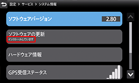 3. アップデート状況を確認する。「設定」→「サービス」→「システム情報」を参照し「ソフトウェア更新」の項目が「インストールしています」になっていることを確認します。所要時間は約7分です。