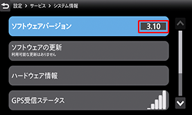 4. アップデート完了を確認する。更新作業が完了すると、マルチインフォメーションディスプレイが自動的に再起動します。マルチインフォメーションディスプレイに画面が表示されたらUSBメモリを取り外してください。「設定」→「サービス」→「システム情報」を参照し、「ソフトウェアバージョン」の項目が「3.10」になっていればアップデート完了です。