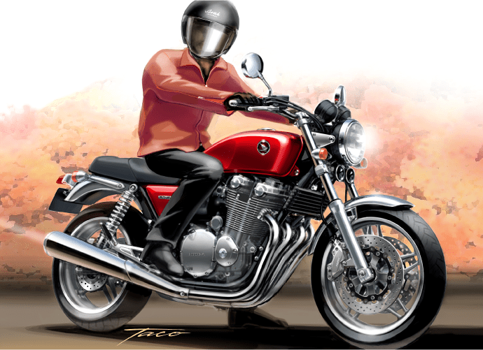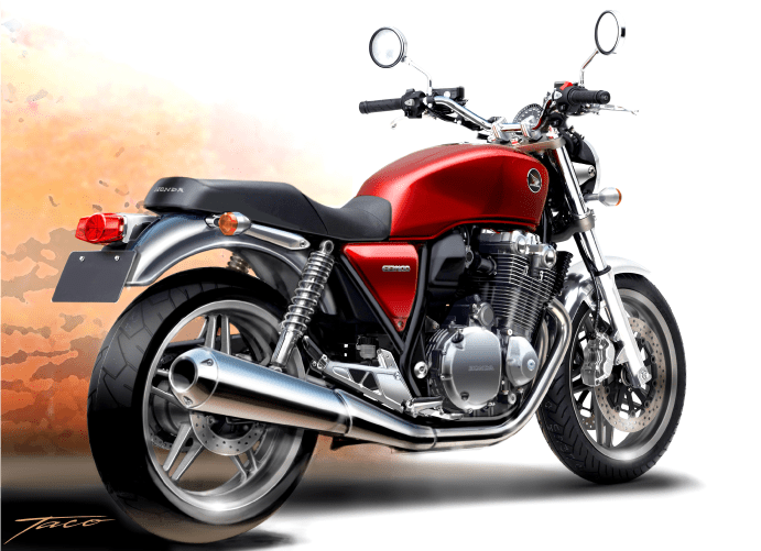 「なぜ今さら性能の劣る空冷エンジンを新たにつくる必要があるのか」。開発を始めた頃は、そんな声もあった。確かに鋭い加速や、モダンでスピード感あるスタイリングは魅力的である。しかし、バイクの進化の道筋は、それだけではないはずだという想いが拭えなかった。タイヤ・エンジン・フレーム・タンク・シートといった、バイクを構成するために必要な要素をどれだけ美しく形づくることができるか。導き出されたコンセプトは「美」「匠」「楽」。美しく、手づくりによるこだわりが感じられ、構えず気楽に乗れるバイクを開発するべきだと考えた。「エンジンが冷えていくときの『キン、キン、キン』という音が好きだ」、「エンジンの中に必要なのは水じゃなくて油でしょ」、「シリンダーフィンを眺めているだけで、なんか良い」。明確な理由などないが、バイクと時間を共にするときに感じる何気ない感覚。そんなハイパフォーマンスバイクでは満たされない感覚を世の中のライダーに届けることを夢みて1台のバイクが完成した。1999年の東京モーターショーに出展されたコンセプトモデル「CB Four」である。結果、世の中の多くのライダーからの共感を得ることができた。そのコンセプトをより鮮明にした「CB1100F」を経て、2010年ついに市販モデルである「CB1100」が陽の目を見ることとなる。「CB Four」から約10年の歳月を要することとなった。しかしその間、一人のバイク乗りとしてHondaの開発者が描いた「空冷CB」の夢は、世の中の多くのバイク乗りの夢ともなっていたのだ。