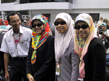 グリッドガールも民族衣装。多民族国家のせいか、エキゾチックな顔立ちの人が多かったです。