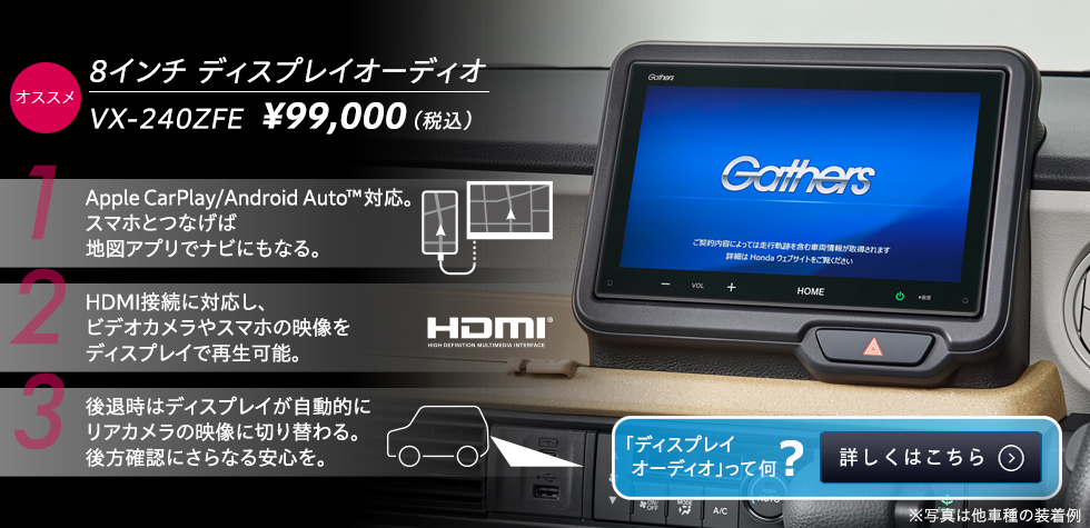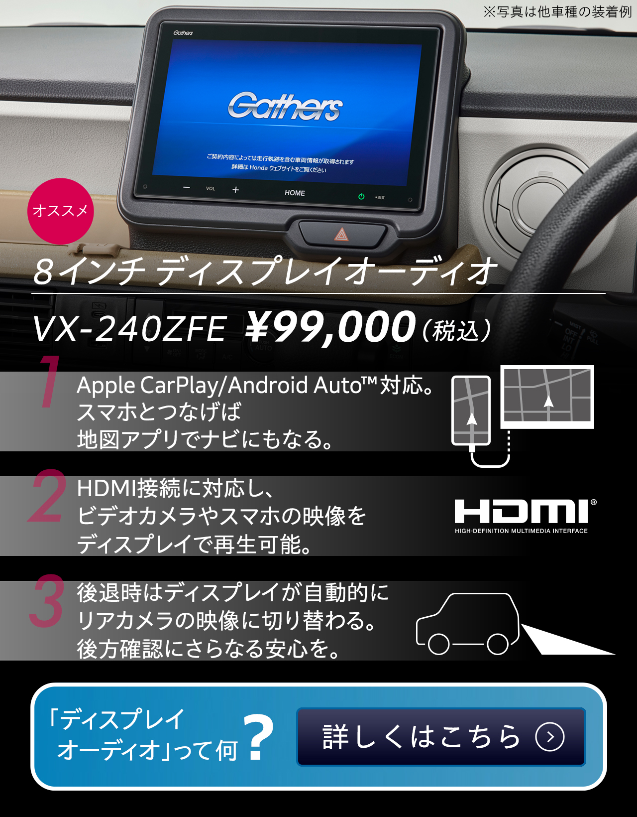 | 取付アタッチメント | 各¥6,600 | (消費税10%抜き 各¥6,000) | 08B40-TKR-B20B(N-WGN用) 08B40-TKR-B10B(N-WGN CUSTOM用) |