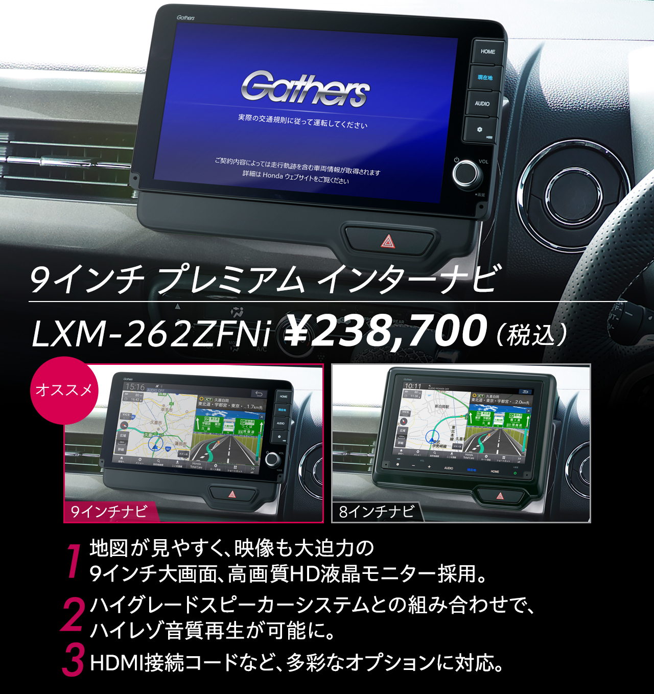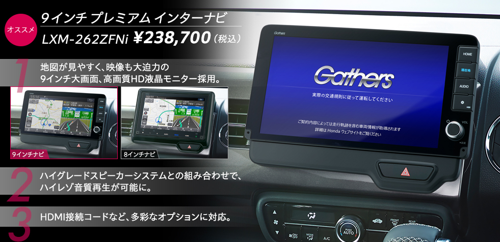 ¥5,500(消費税10%抜き ¥5,000) 0.5H* 08A22-7L0-B00 *ナビ本体と同時装着しない場合、標準取付時間 0.8H となります。