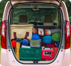 ※当ページで積載しているキャンプ道具は、親子4人(大人2人と小学校のお子さま2人)で1泊2日の屋外キャンプへ行くことを想定した一例です。あくまでも参考としてください。