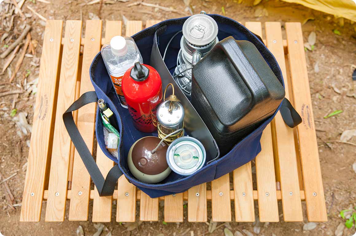 キャンプ専用設計のトートバッグ