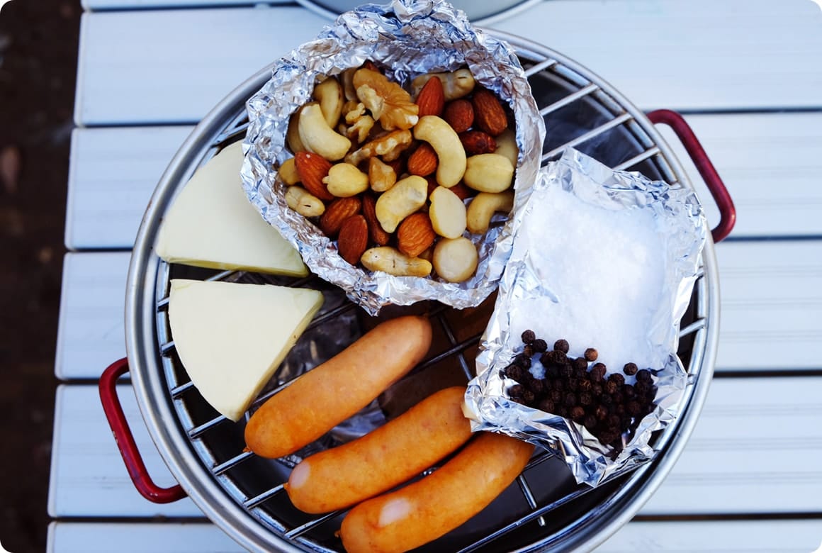 ナッツなどの乾燥食品であれば、水分を気にする必要がないので失敗知らず。ナッツのスモークは味も絶品のため、ぜひ試してみてください。また、塩やコショウをスモークしてもおいしいですよ。