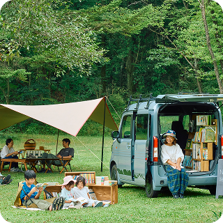 N-VANをDIYで、本と過ごす快適な空間に。荷室をアレンジして家族とキャンプへ出かけ、自然の中で読書を楽しむ贅沢な時間をご提案します。