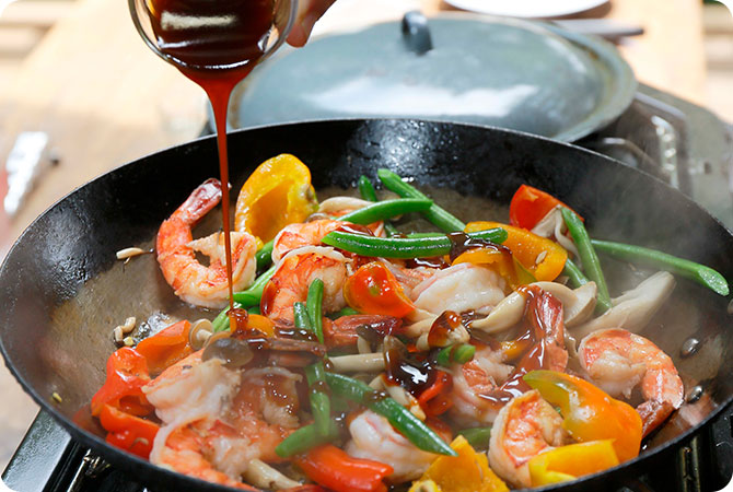エビとパプリカのオイスター炒め