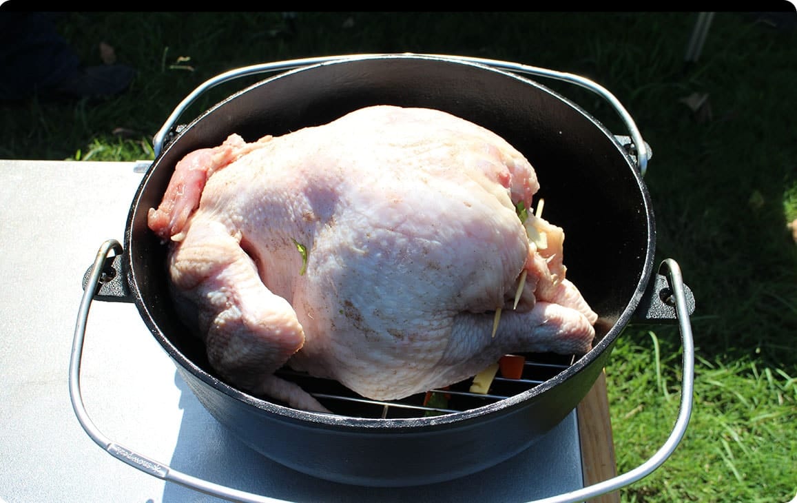 ダッチオーヴンを実際に手にすると、その重さに驚かれるかもしれません。この鍋を敬遠する方の多くがこの重さを口にします。確かに短所と言えば短所ですが、これがダッチオーヴンの武器。肉厚の鋳鉄じゃなければできないことがあるんです。