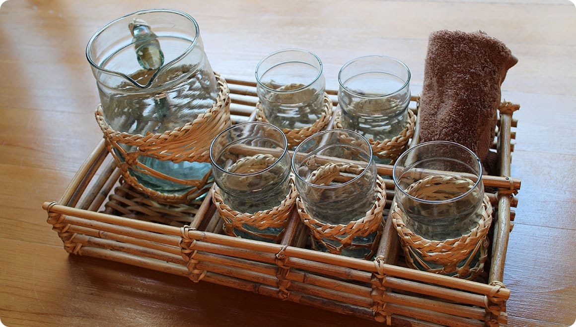それと、スーパーなどで使われているような買い物かごを持って行くこと。そうすれば、食器洗いなどの運搬に便利ですし、洗った後もそのままにしておけば乾いてしまいます。