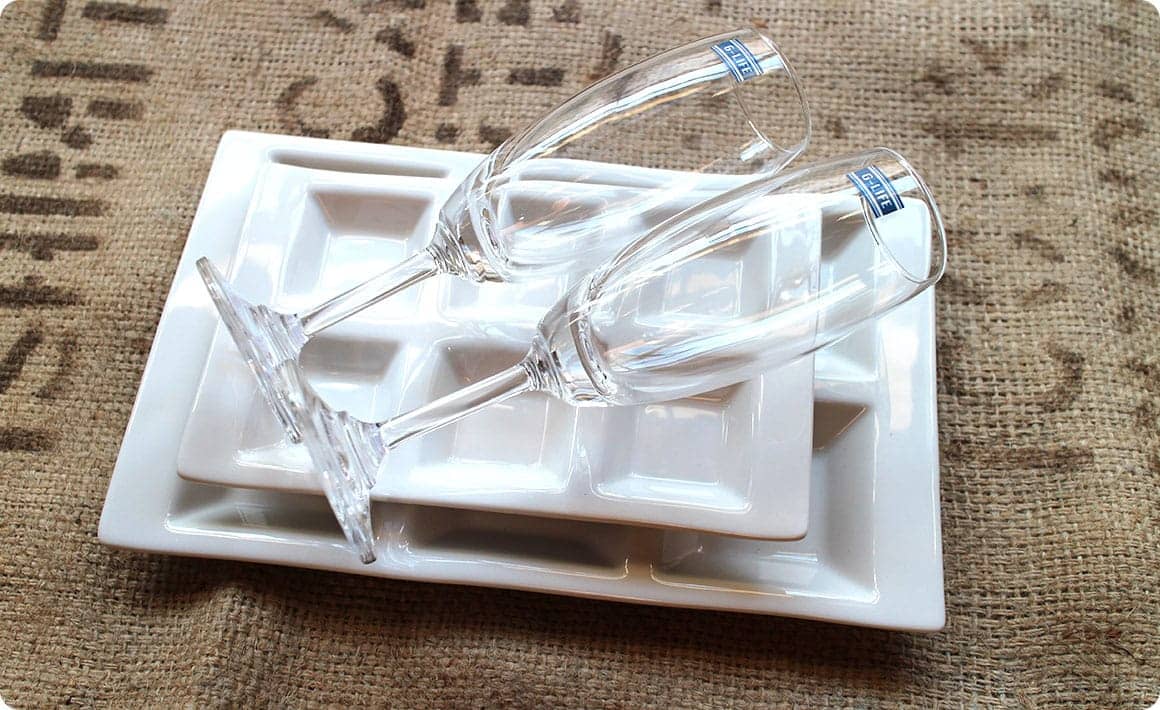 そこで、意外に便利なのが100円ショップで売られている食器類です。安価でありながら、多様多彩で、かなり丈夫。ワインやシャンパングラスも、しっかりとした肉厚であのプチプチシートをくるっと巻けば問題ありません。
