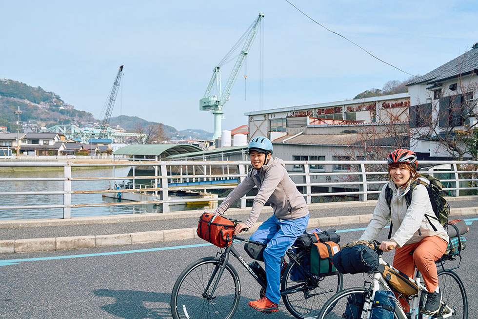 乗船して5分も経たずに、対岸にある因島の土生港(はぶこう)に到着。ゆめしま海道が繋ぐ離島群に別れを告げて、しまなみ海道サイクリングのメインルートに復帰します!