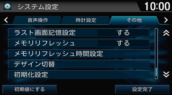 - メモリリフレッシュ時間設定:自動的にメモリをリフレッシュする時刻を設定します。(初期値:2:00)