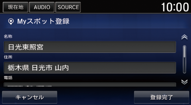 Myスポット登録画面が表示されたら、登録完了を選択します。