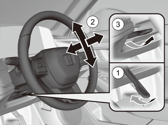 - ハンドル位置調節レバーは、コラムカバーの下にあります。