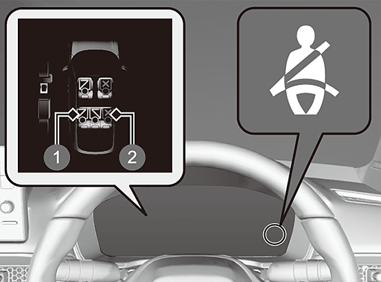 - 運転席または助手席のシートベルトを着用せずに走行した場合、停車するとブザーは止まります。また、走行している場合でも一定時間を超えるとブザーは止まります。