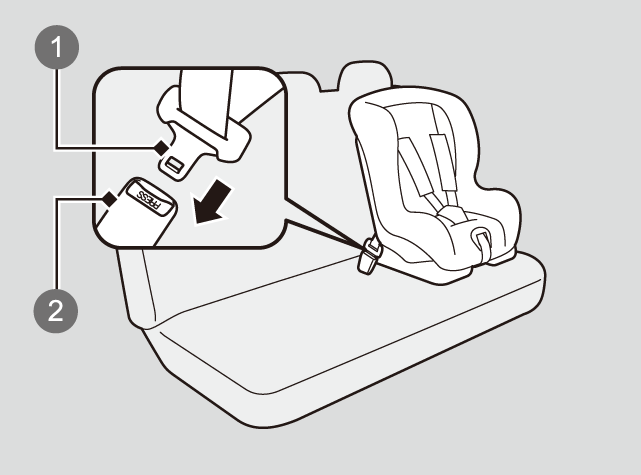 ISOFIX/i-Sizeチャイルドシートは、リヤシートの外側2座席に設置できます。チャイルドシートは、下部取付金具とトップテザー取付金具で固定します。