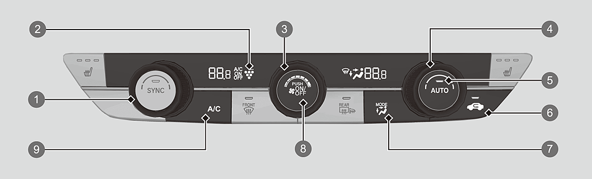 独立モードに戻すときは、SYNCを押すか、助手席側の温度調節ダイヤルを操作します。