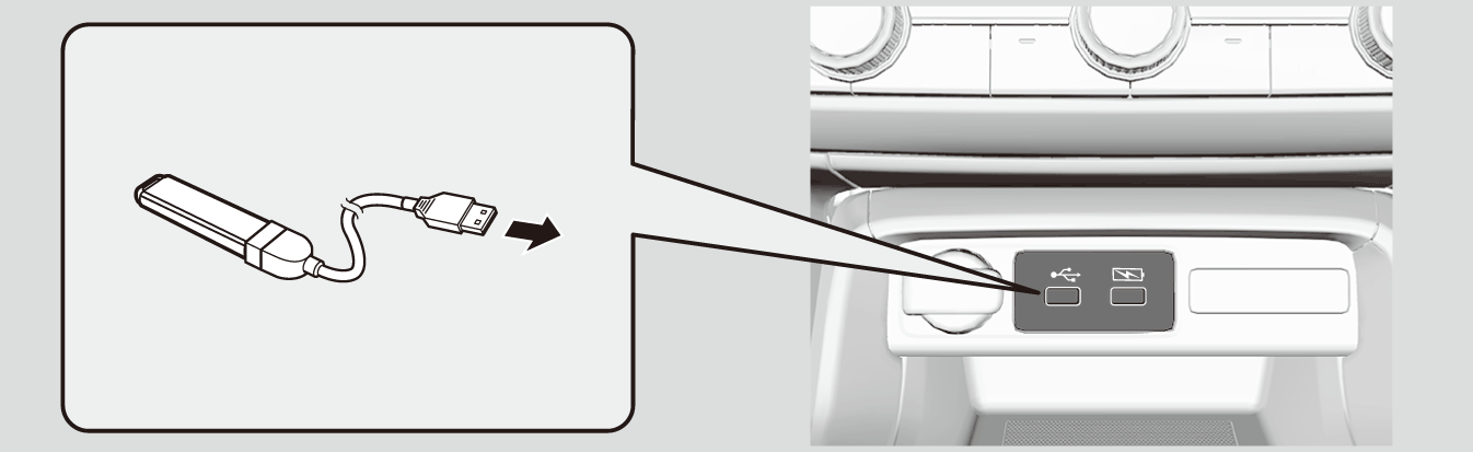 USBメモリーをUSBジャック1(音楽再生/スマートフォン接続用)に接続する。
