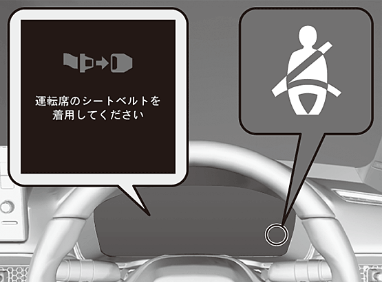 パワーモードをONモードにしたときや走行したとき、運転席または助手席のシートベルトを着用するまでシートベルトリマインダーが作動し、ブザーや警告灯でお知らせします。
