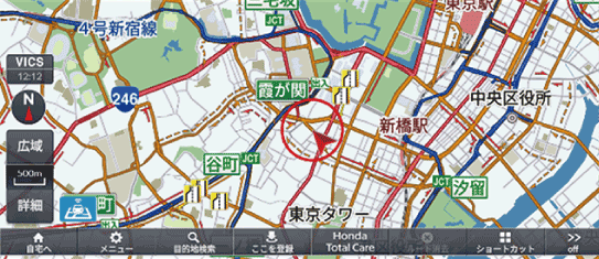 • 渋滞情報はVICSセンターでの収集、編集、送信に5~10分程度の時間がかかるため、実際の状況が変化している場合があります。