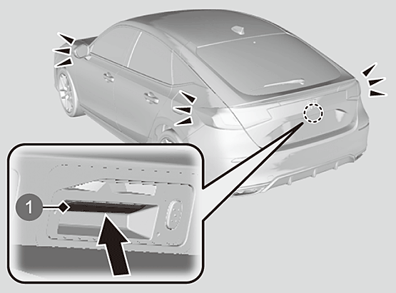 - 同じ作動範囲にHondaスマートキーを携帯している人がいるときは、携帯していない人でもドアロックセンサーやドアハンドル、テールゲートオープンスイッチで施錠/解錠操作ができます。