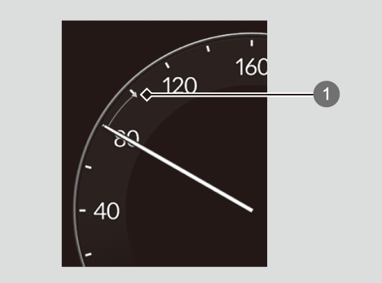 メーターデザインが「2眼」または「バー」のとき、アダプティブクルーズコントロール(ACC)またはクルーズコントロールで速度を設定すると、スピードメーターに設定した速度の位置にマークが表示されます。