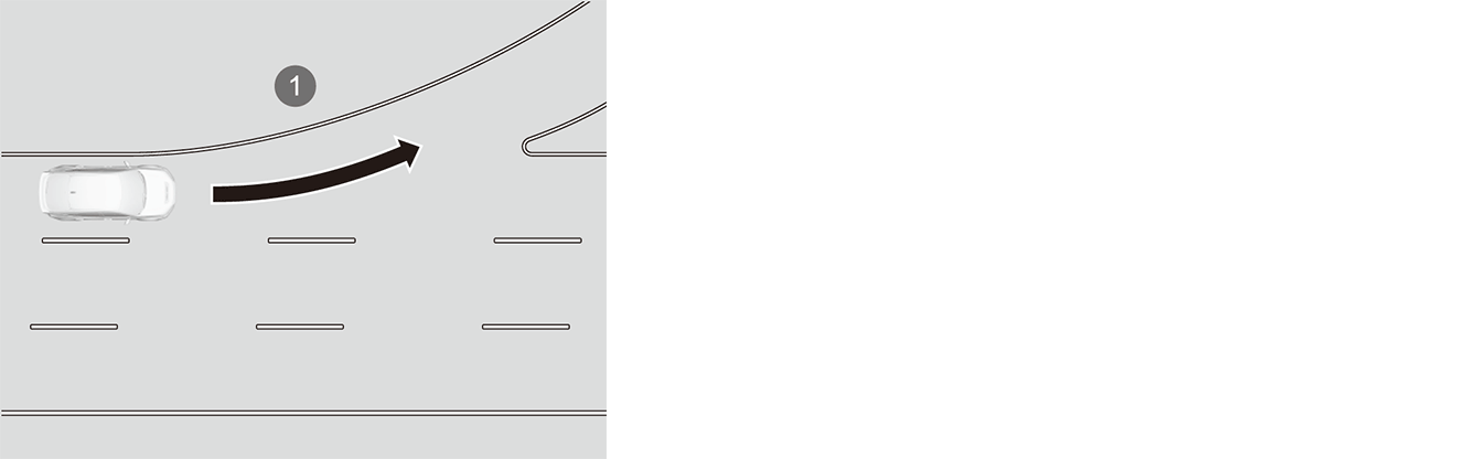 - 交差点や横断歩道など車線の数が増減している区間や車線が複雑に交差している区間を走行するとき