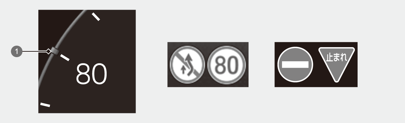 この機能は、日本の道路標識を認識するよう設計されていますが、すべての標識が表示されるわけではありません。