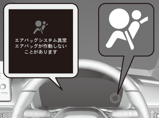 エアバッグシステム警告灯を無視すると、エアバッグシステム、プリテンショナーシステムが正しく機能せず、重大な傷害を受けたり死亡したりするおそれがあります。エアバッグシステム警告灯が点灯する場合は、ただちにHonda販売店で点検を受けてください。