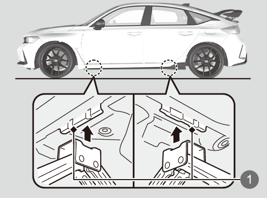 この車には、ジャッキが標準で搭載されていません。ジャッキアップをする場合は、この車専用のジャッキをお使いください。詳しくはHonda 販売店にご相談ください。