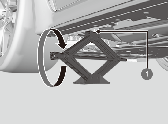 ジャッキの上部がジャッキポイントに接触するまで図の部分を矢印の方向に回す。