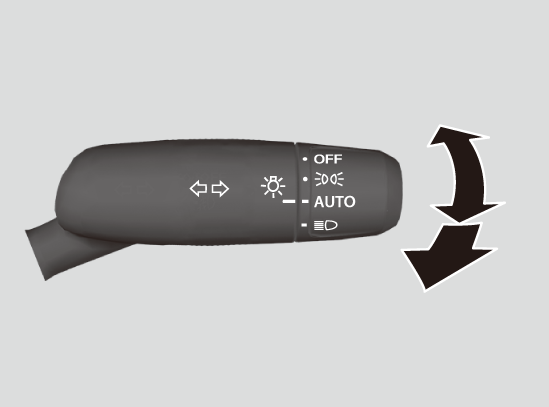 ヘッドライトが点灯しているとき、レバーを前方に押すとハイビームに切り換わります。手前に引くとロービームに戻ります。