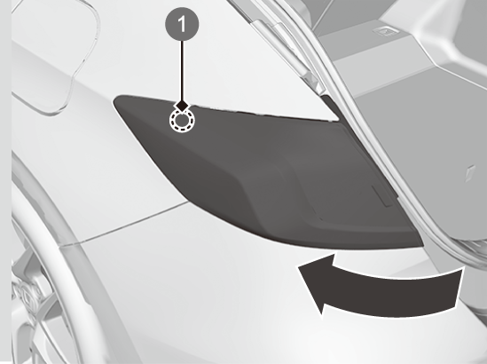 ライトを外側に回し、上部のスナップピンを外す。
