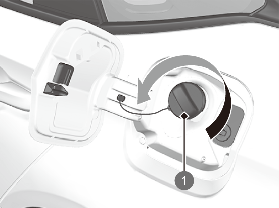 給油後、「カチッ」という音が1回以上するまでキャップを締め付ける。