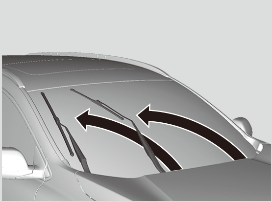 - ワイパースイッチのレバーをMISTの位置に押し上げて、両方のワイパーアームを通常の位置に戻す。