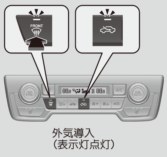 を押すとエアコンが作動し、自動的に外気導入に切り換わります。
