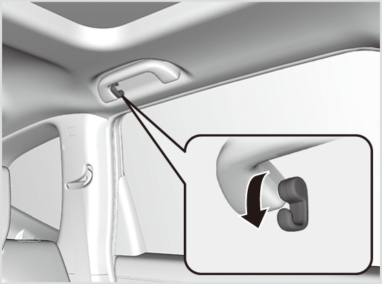 グラブレールにものをかけたり、コートフックに重いものやとがったものをかけたりしない。サイドカーテンエアバッグが正常に作動しなかったり、作動時にものが飛んだりしてけがをするおそれがあります。