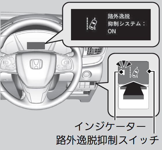 路外逸脱抑制スイッチを押して、歩行者事故低減ステアリングのONとOFFを切り替えてください。