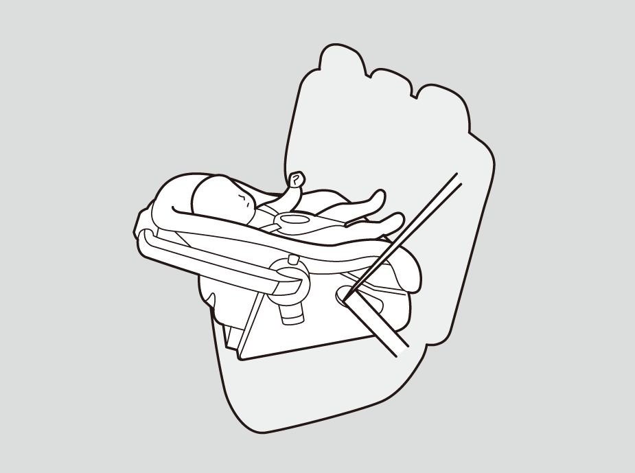 首のすわっていない乳児は、乳児用のチャイルドシートを正しく固定し、乗せてください。
