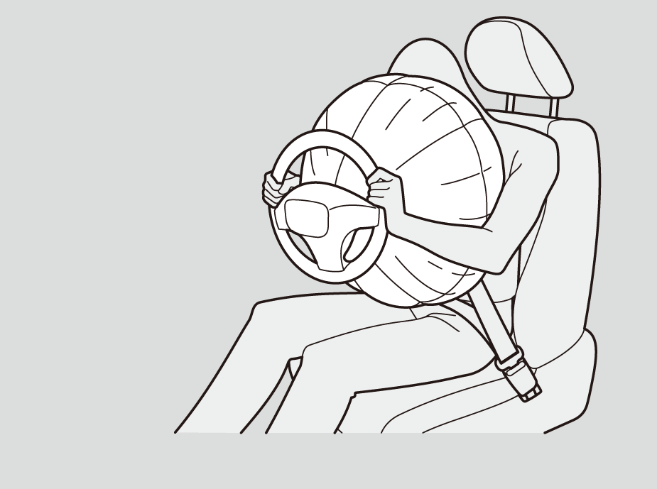 前方向から衝突すると、シートベルトが乗員の下半身と胴体を拘束し、SRS エアバッグが頭と胸部を保護します。運転者の視界を妨げたり、ハンドル操作の邪魔にならないように、SRS エアバッグは膨らんだ後すぐにしぼみます。