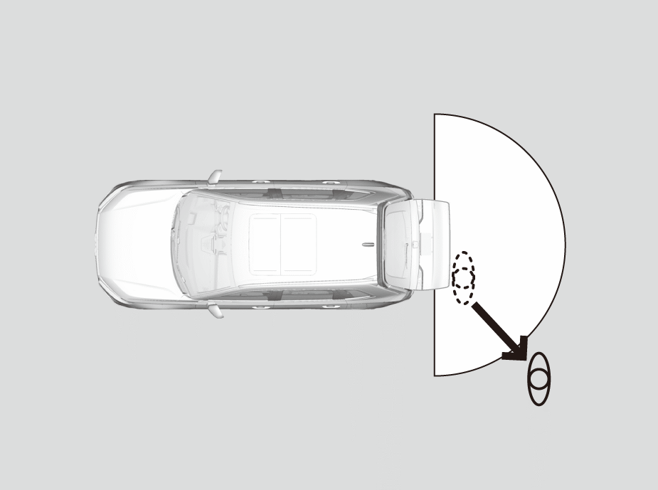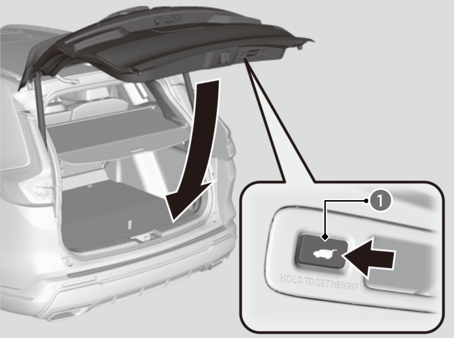 - 動作中にパワーテールゲートボタンを押すと、動作を停止します。停止した状態でパワーテールゲートボタンを長押しすると、逆方向に動作します。