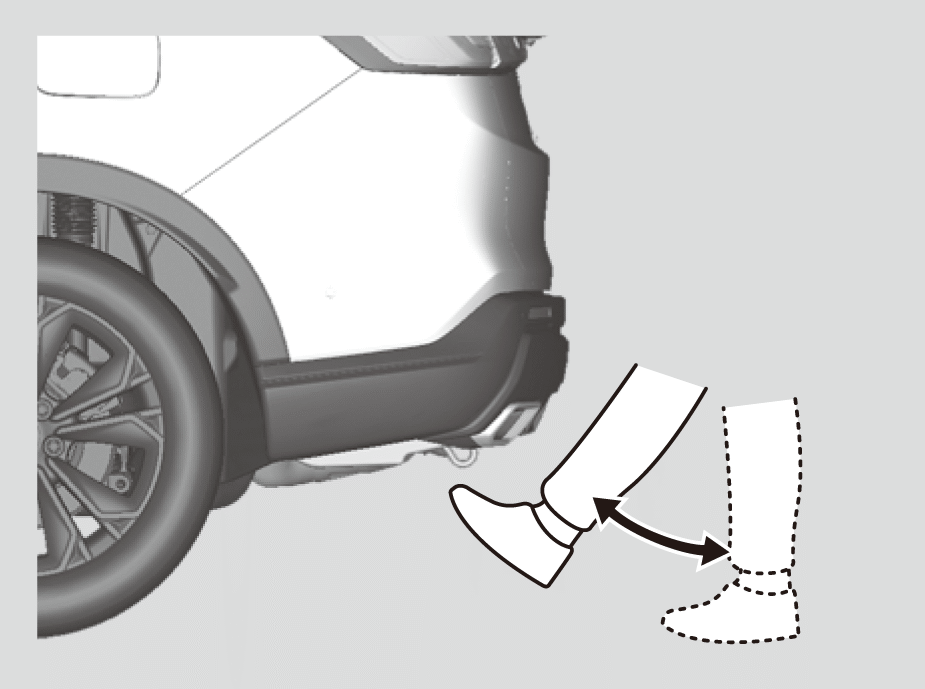 片足のつま先をリヤバンパー中央の下のセンサーの検知範囲内へ入れて引くような動作を行う。
