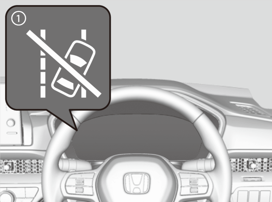 繰り返しシステムが作動しても運転者の操作がない場合は警報音が鳴ります。その後、路外逸脱抑制機能操舵アシスト一時停止警告灯(