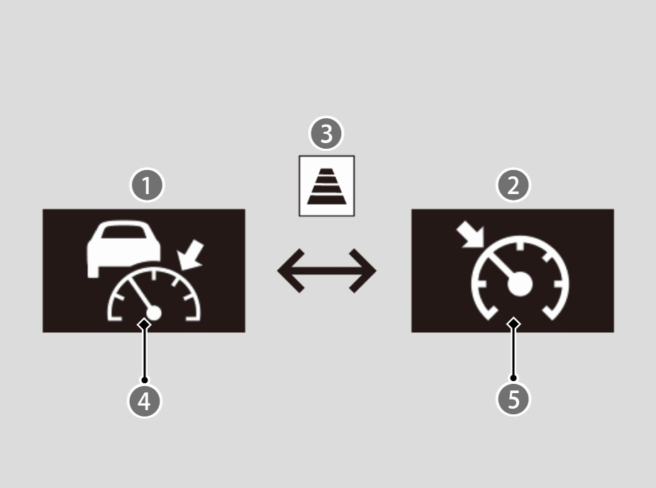 - 自動定速走行中に減速セレクターを使用すると自動定速走行は解除されます。