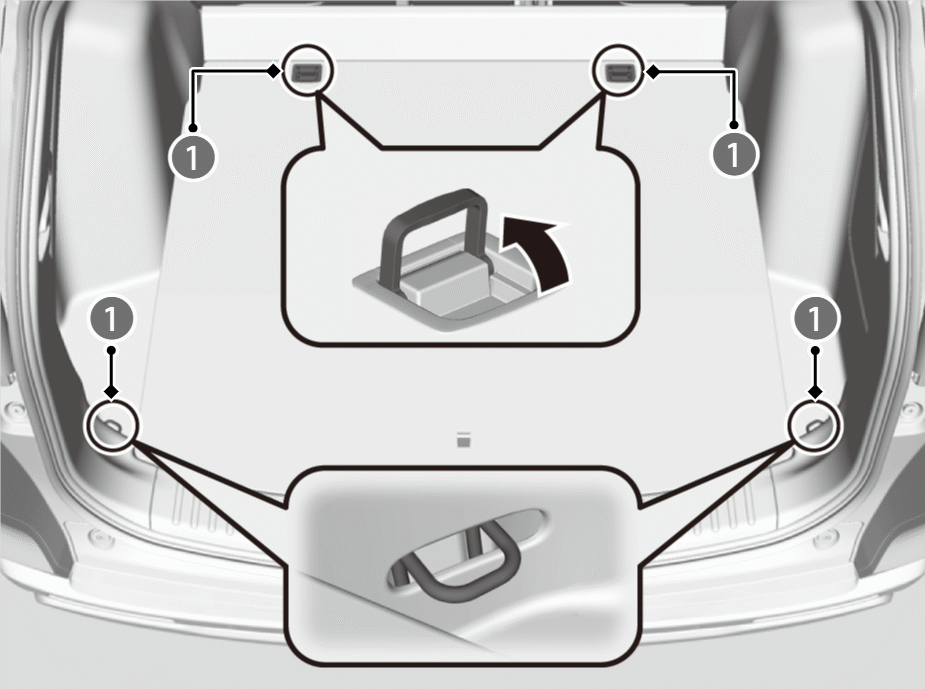 タイダウンフックは市販のカーゴネットを使用して、収納したものを固定することができます。