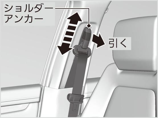 - フロントシートのシートベルトは、座高に合わせて、ショルダーアンカーの高さを調節してください。